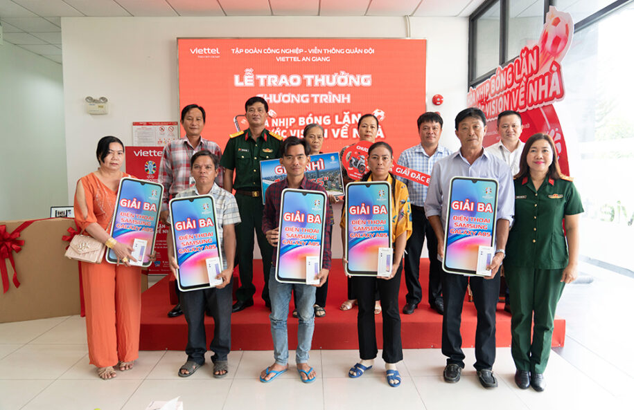 Sáng 25/9, Viettel An Giang tổ chức lễ trao thưởng chương trình “Hòa nhịp bóng lăn – rước Vision về nhà”. Đại tá Phạm Văn Hưng, Phó Giám đốc Khách hàng doanh nghiệp Viettel An Giang và ông Phạm Công Hải, Phó Giám đốc Khách hàng cá nhân Viettel An Giang đã đến dự và trao giải.