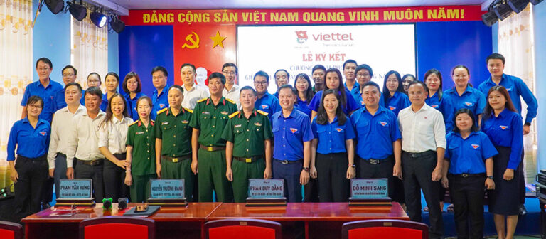 Chiều 11/7, Ban Thường vụ Tỉnh đoàn An Giang và Viettel An Giang ký kết chương trình phối hợp năm 2024. Quang cảnh lễ ký kết Ban Thường vụ Tỉnh